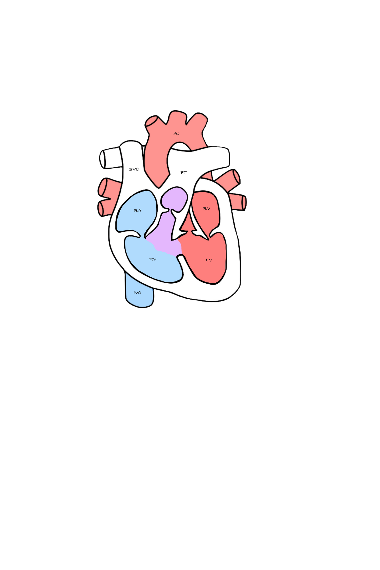 Atrioventricular (AV) canal defect is when there is a hole in the central wall of the heart, allowing blood to mix in the upper (atria) and lower chambers (ventricles) of the heart.1,2 This defect can present in two different ways: partial and complete. In a partial defect, the hole exists only in the upper chamber of the heart and can present with abnormal tricuspid and mitral valves. A complete defect, on the other hand, extends to the lower chambers of the heart, which means that all of the blood being pumped through the heart can mix interchangeably between ventricles and atria. In complete AV Canal, the tricuspid and mitral valves are not formed individually and instead form one single, large valve that does not close properly when the heart beats. This further allows blood to flow from the ventricles (the lower chambers of the heart) into the atria (the upper chambers) and mix even more.2